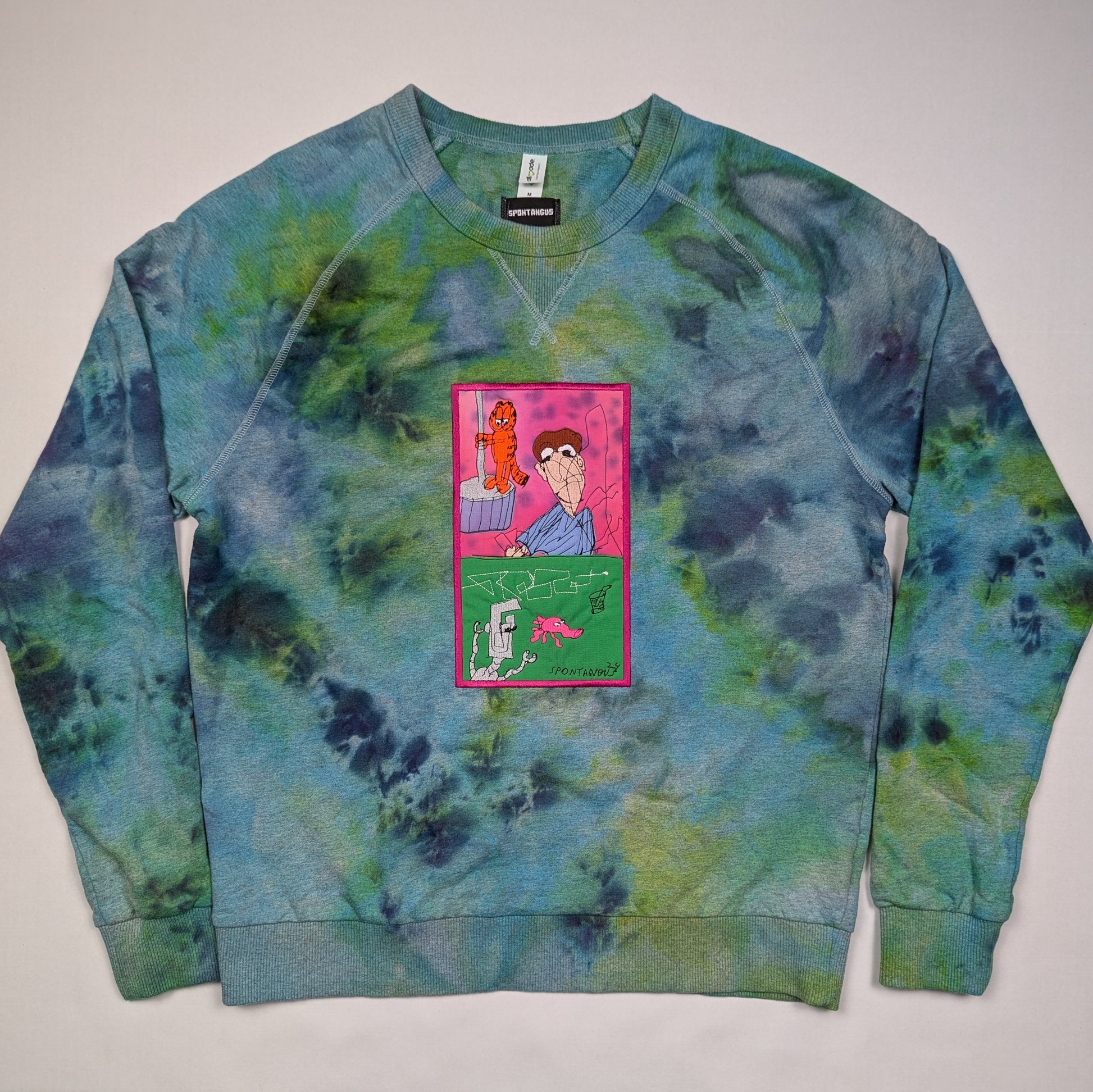 Machine embroidery/applique on an ice-dyed All Made sweatshirt.